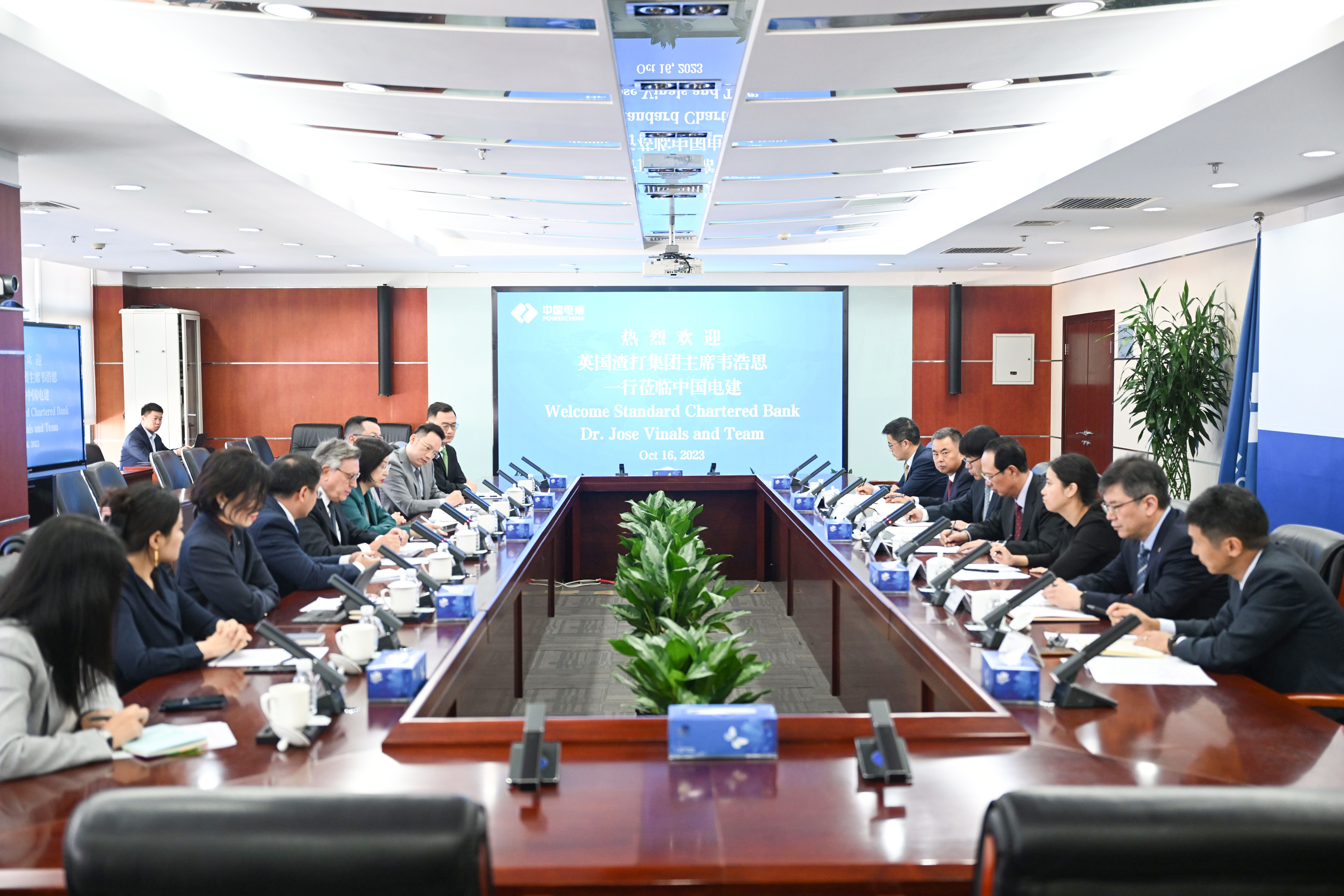 丁焰章對韋浩思一行到訪表示歡迎,并介紹了公司的戰(zhàn)略規(guī)劃及核心業(yè)務(wù)。他表示,中國電建在“水、能、砂、城、數(shù)”領(lǐng)域具有“投建營”全產(chǎn)業(yè)鏈一體化優(yōu)勢,是全球清潔低碳能源、水資源與環(huán)境建設(shè)的引領(lǐng)者,全球基礎(chǔ)設(shè)施互聯(lián)互通的骨干力量,服務(wù)“一帶一路”建設(shè)的龍頭企業(yè)。作為一家全球化的企業(yè),中國電建緊跟國家“一帶一路”倡議,堅(jiān)持海外優(yōu)先發(fā)展戰(zhàn)略,大力推進(jìn)綠色發(fā)展、低碳發(fā)展、高質(zhì)量發(fā)展,深耕屬地化管理,積極履行社會責(zé)任,與當(dāng)?shù)厣鐓^(qū)和諧共生、共同發(fā)展。長期以來,中國電建與渣打集團(tuán)建立了良好的合作關(guān)系,希望雙方在海外融資等領(lǐng)域進(jìn)一步加強(qiáng)合作,實(shí)現(xiàn)互利共贏。